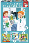Set of 4 progressive puzzles of 12, 16, 20 and 25 pieces. Each progressive puzzle has different pieces...