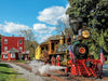 Jigsaw puzzle featuring cottages in the forest and a horse feeding as part of the All Aboard Collection...