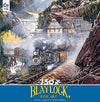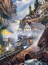 Enjoy the beautiful train scenery in this 750 piece puzzle Shows an old-fashioned steam engine in a mountain...