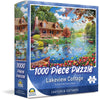 A beautiful and serene puzzle that depicts a small cottage nestled in a clearing in the woods Made...