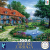 Jigsaw puzzle featuring tranquil cottages near a flowing river as created by world-famous artist Arturo Zarraga and made...