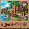 This MasterPieces 19.25" x 26.75" 1000pc Time Away Craft Paper Box Puzzle features a beautiful and relaxing porch...